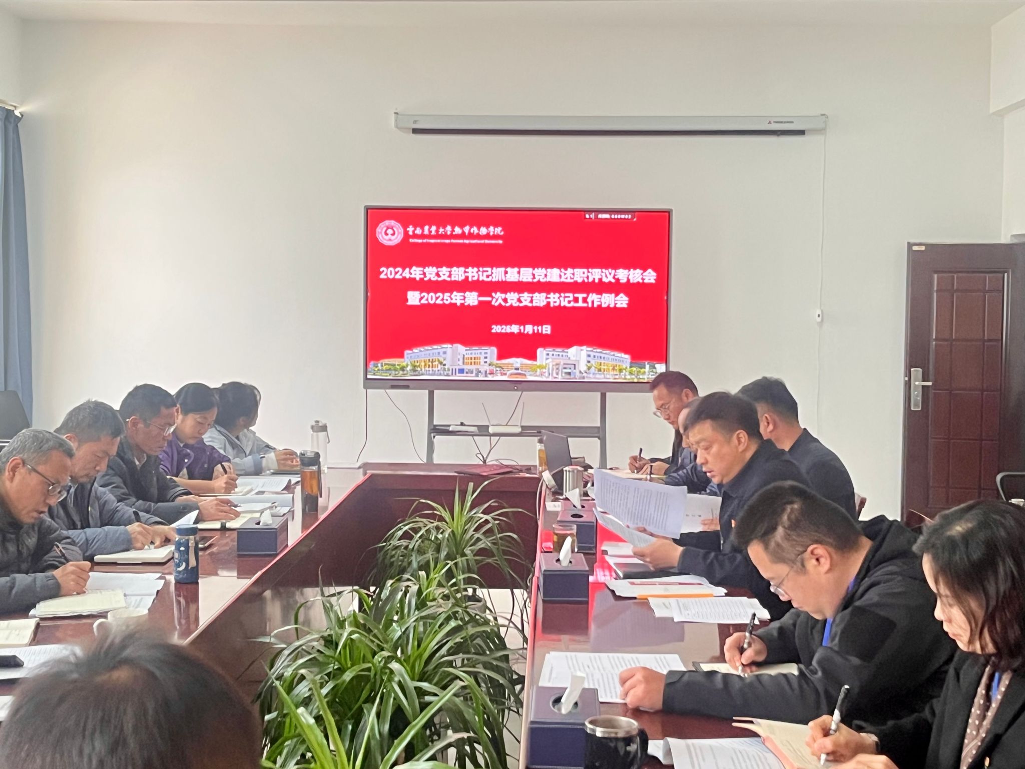 按照学校组织部关于开展党组织书记抓党建述职评议考核工作要求,bat365中文官方网站2024年度党支部书记抓党建述职评议会暨2025年第一次党支部书记工作例会于1月11日下午在正德楼4-2会议室召开。bat365中文官方网站委员、各党支部书记和党员代表共计42人参加会议。会议由bat365中文官方网站书记杜华波主持。