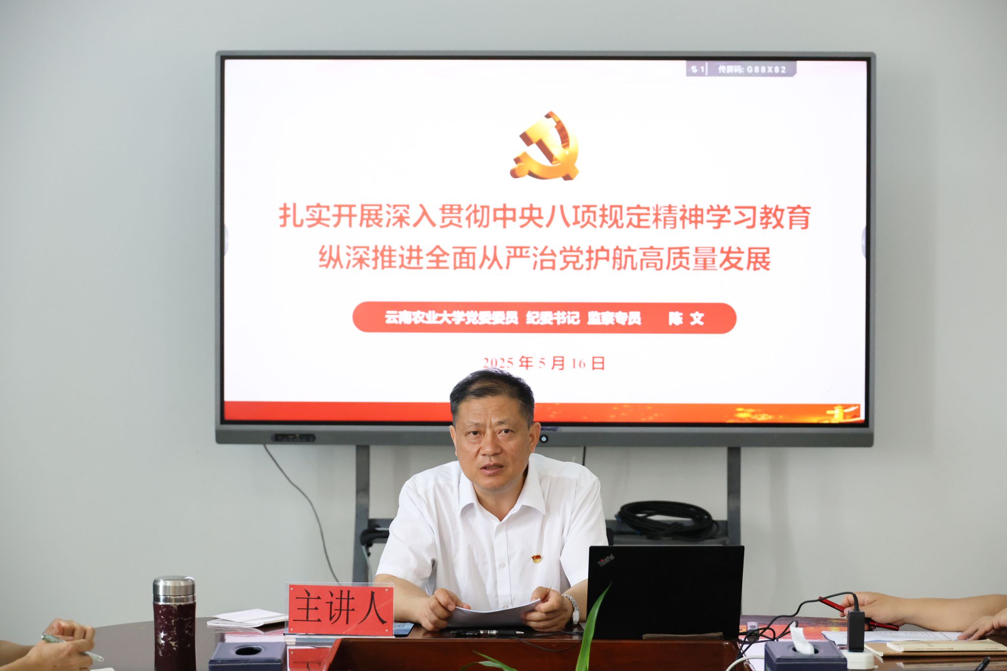 调研结束后,陈文为党员干部讲授“扎实开展深入贯彻中央八项规定精神学习教育 纵深推进全面从严治党护航高质量发展”专题党课,学院党政领导班子、科级干部、党支部书记参加此次党课学习。