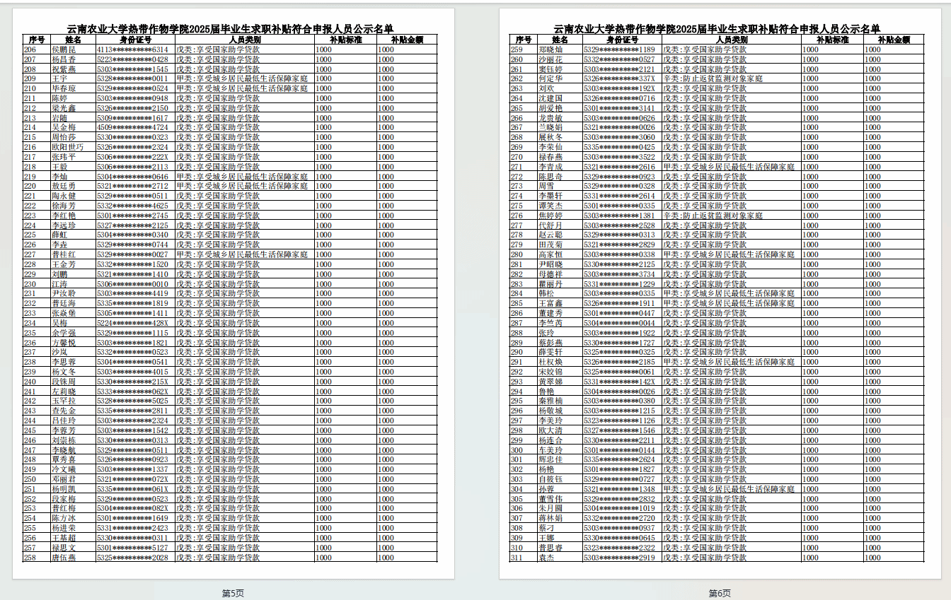 根据财政部人力资源社会保障部关于印 发〈就业补助资金管理办法〉的通知》(财社〔2023〕181 号)、 《云南省人力资源和社会保障厅 云南省教育厅 云南省财政 厅 云南省公安厅 云南省民政厅 云南省农业农村厅 云南 省残疾人联合会关于做好高校毕业生一次性求职补贴发放工作 的通知》(云人社通〔2024〕17号)文件要求,学院认真贯彻落实高校毕业生求职创业补贴申请专项工作,现将2025届毕业生求职补贴符合人员申报公示名单公示如下(见附件),公示期自即日起五个工作日,公式无误后报普洱市公共就业和人才服务中心审核批准。凡对以上结果存在异议,请以实名制书面形式向学生科反应,联系电话0879-3028687。