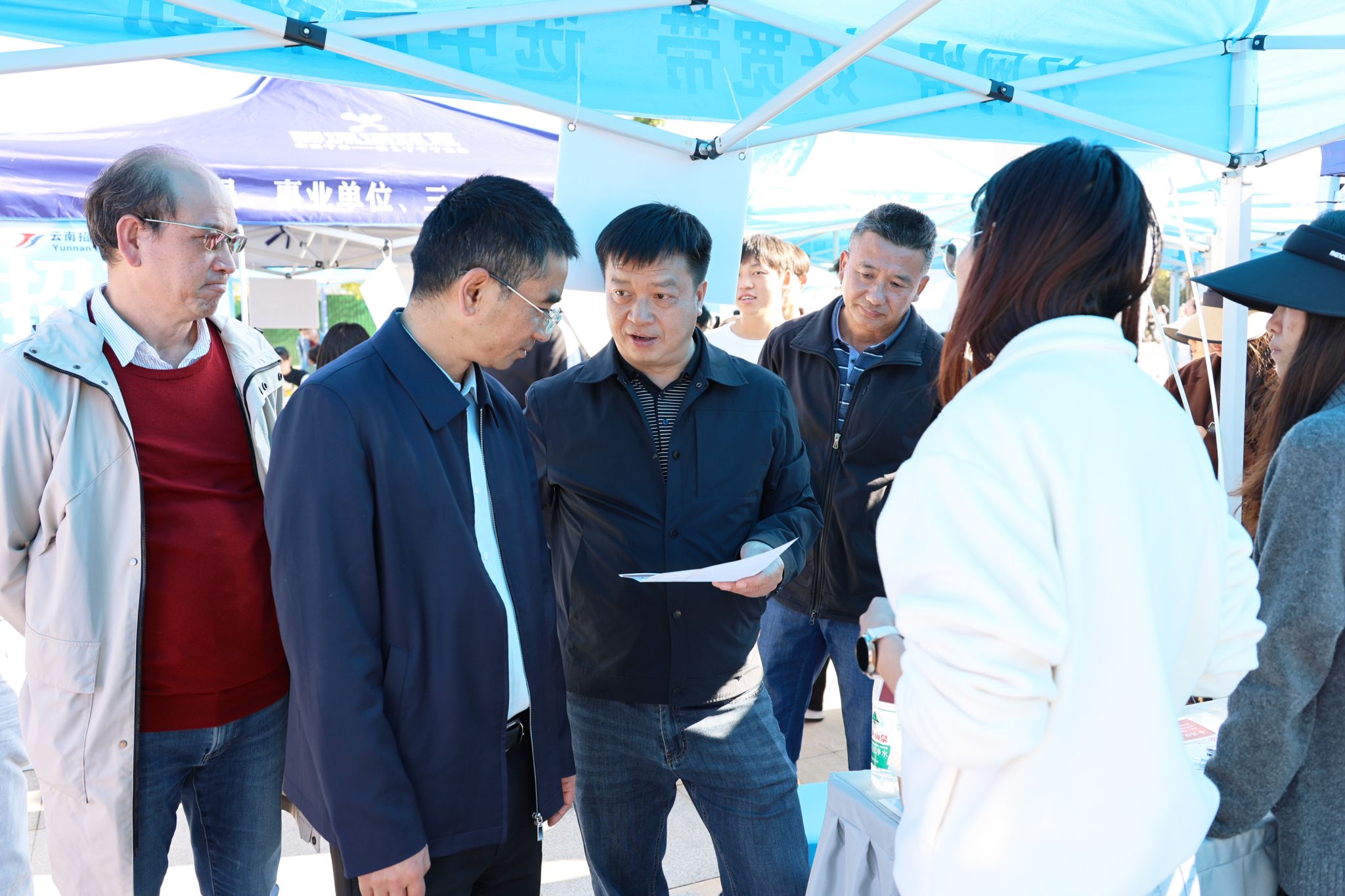 bat365中文官方网站书记杜华波、院长杨学虎,普洱市人力资源和社会保障局局长曹刚到招聘会现场走访调研指导,与用人单位代表和学生深入交流,了解用人需求并指导2025届毕业生的就业工作。