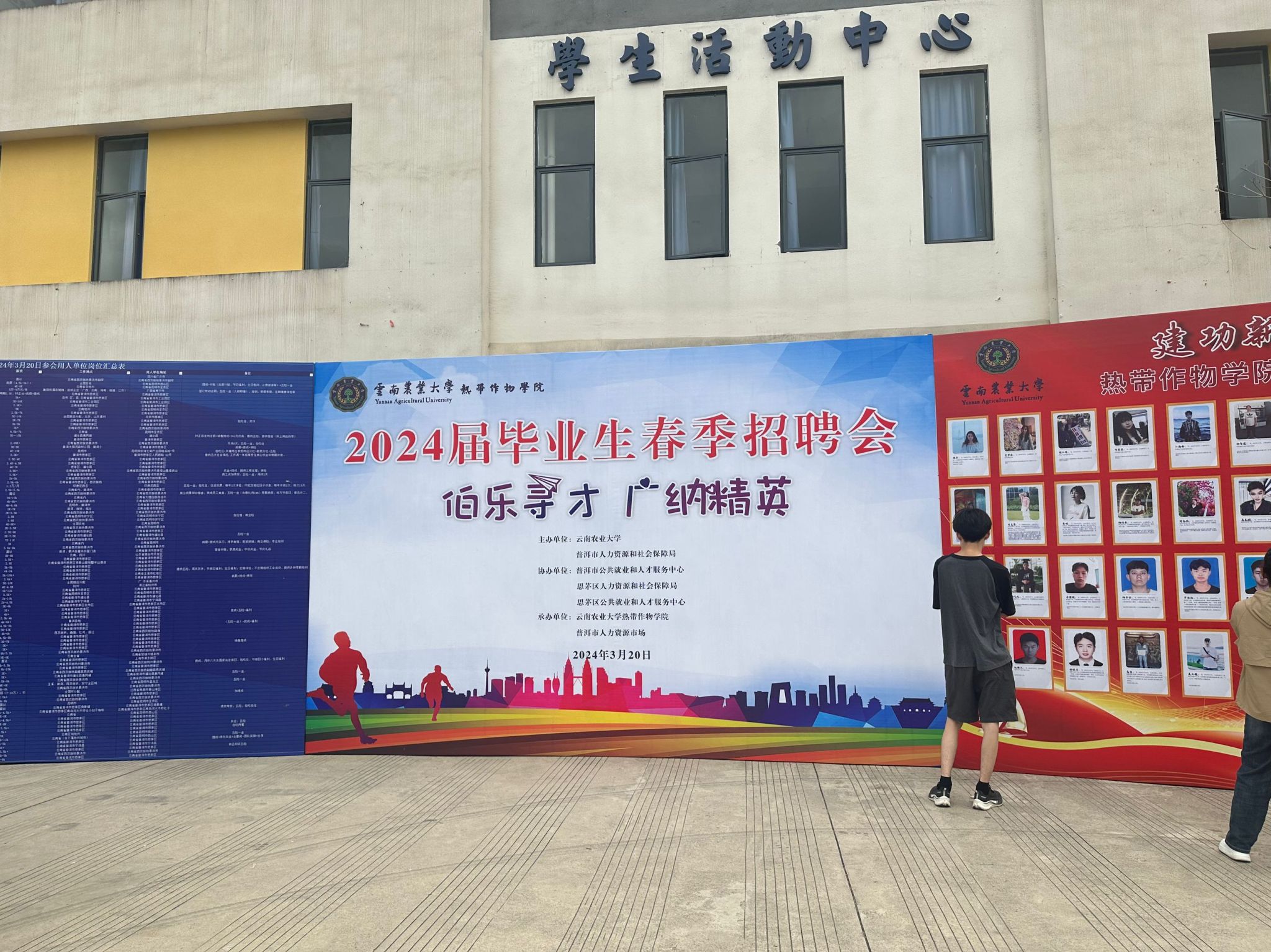 2024年3月20日下午,由云南农业大学、普洱市人力资源和社会保障局主办,bat365中文官方网站、普洱市人力资源市场承办的“伯乐寻才 广纳精英”2024届毕业生春季招聘会在学生活动中心举行,活动旨在宣传国家就业政策,搭建高校与用人单位间的沟通交流平台,促进毕业生高质量充分就业。