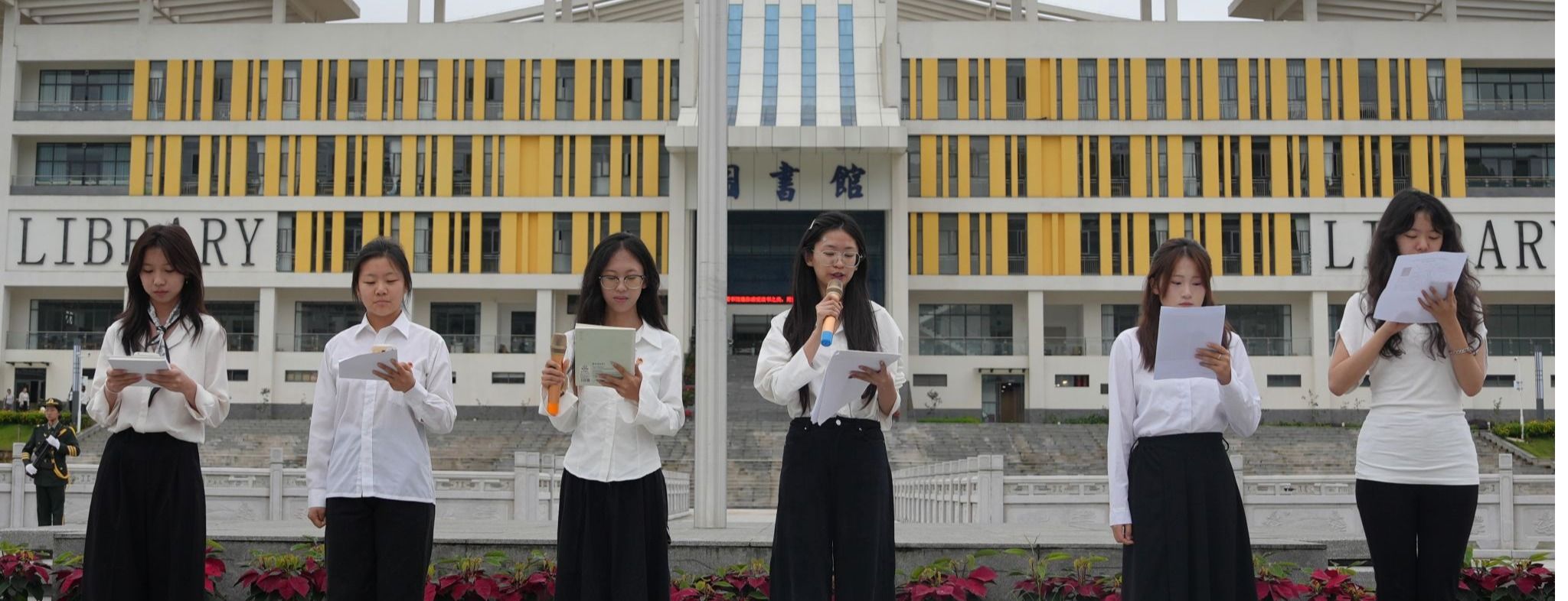 仪式后,学生代表带来七一建党节主题朗诵,以饱含深情的诵读,回溯党的光辉历程,从延安窑洞的运筹帷幄,到社会主义建设的热火朝天……传递对党的深切敬意;