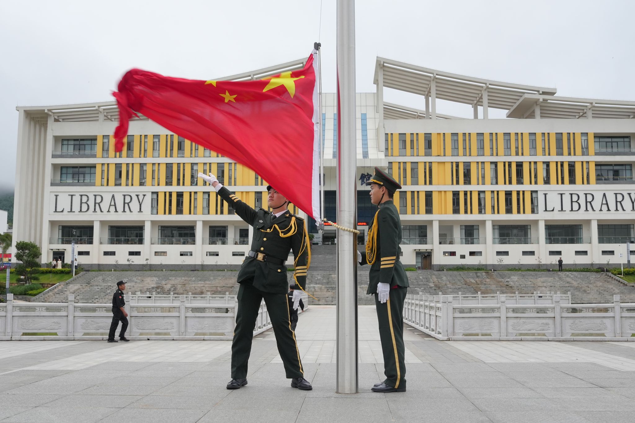 仪式伊始,国旗护卫队迈着整齐步伐护送国旗入场。伴随着《义勇军进行曲》的激昂旋律,五星红旗缓缓升起,全体人员庄严肃穆行注目礼。