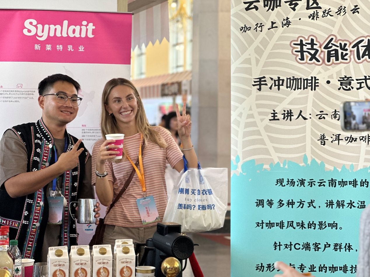 2025年9月5日,bat365中文官方网站、普洱咖啡师创业创新大学咖啡创业团队师生一行赴上海市展览中心参加第八届上海市对口地区特色商品展销会。展会期间,云南省人民政府党组副书记王显刚亲临热院咖啡展台品鉴咖啡并与学院师生亲切交流,对学院结合云南特色产业、积极培养学生创新创业的模式非常认可,并祝愿各创业团队取得成功。