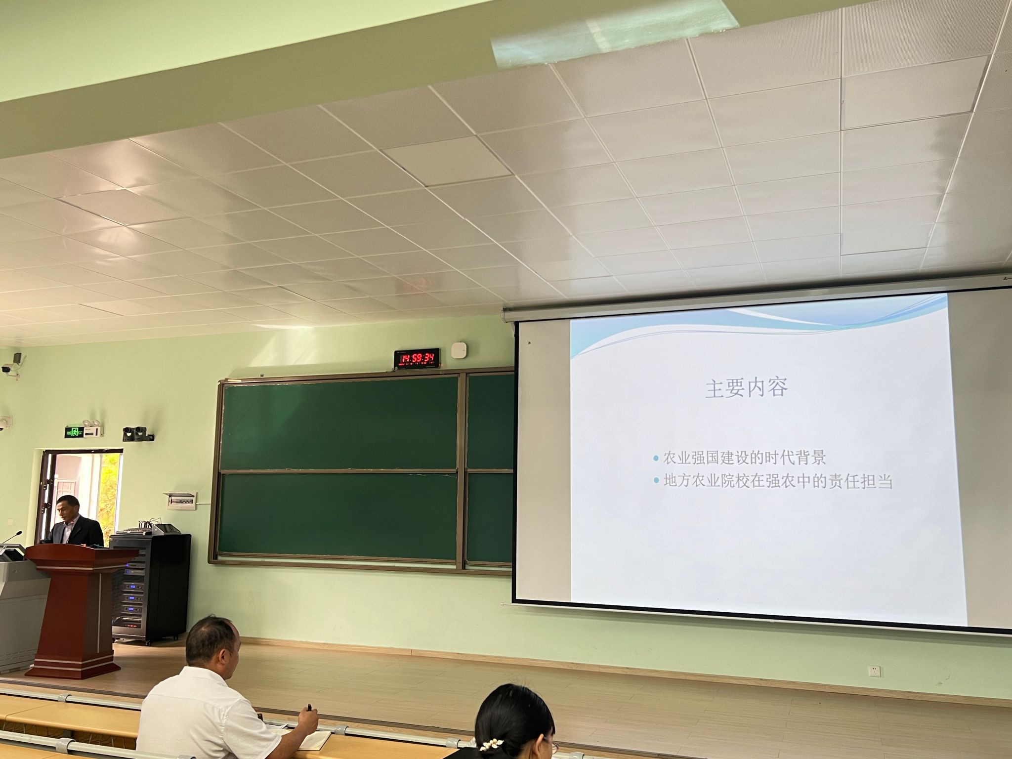 为深入学习贯彻党的二十大精神,明晰农业强国建设的战略路径与地方农业院校的使命担当,11月12日,我系特邀请中国农业大学人文与发展学院高启杰教授为全系师生带来题为《农业强国建设与地方农业院校的担当作为》的专题讲座。本次讲座紧扣党的二十大“加快建设农业强国,扎实推动乡村产业、人才、文化、生态、组织振兴”的战略部署,系统阐释农业强国建设的核心要义,深入探讨地方农业院校的使命担当,为师生们呈现了一场兼具理论深度与实践指导意义的学术盛宴。