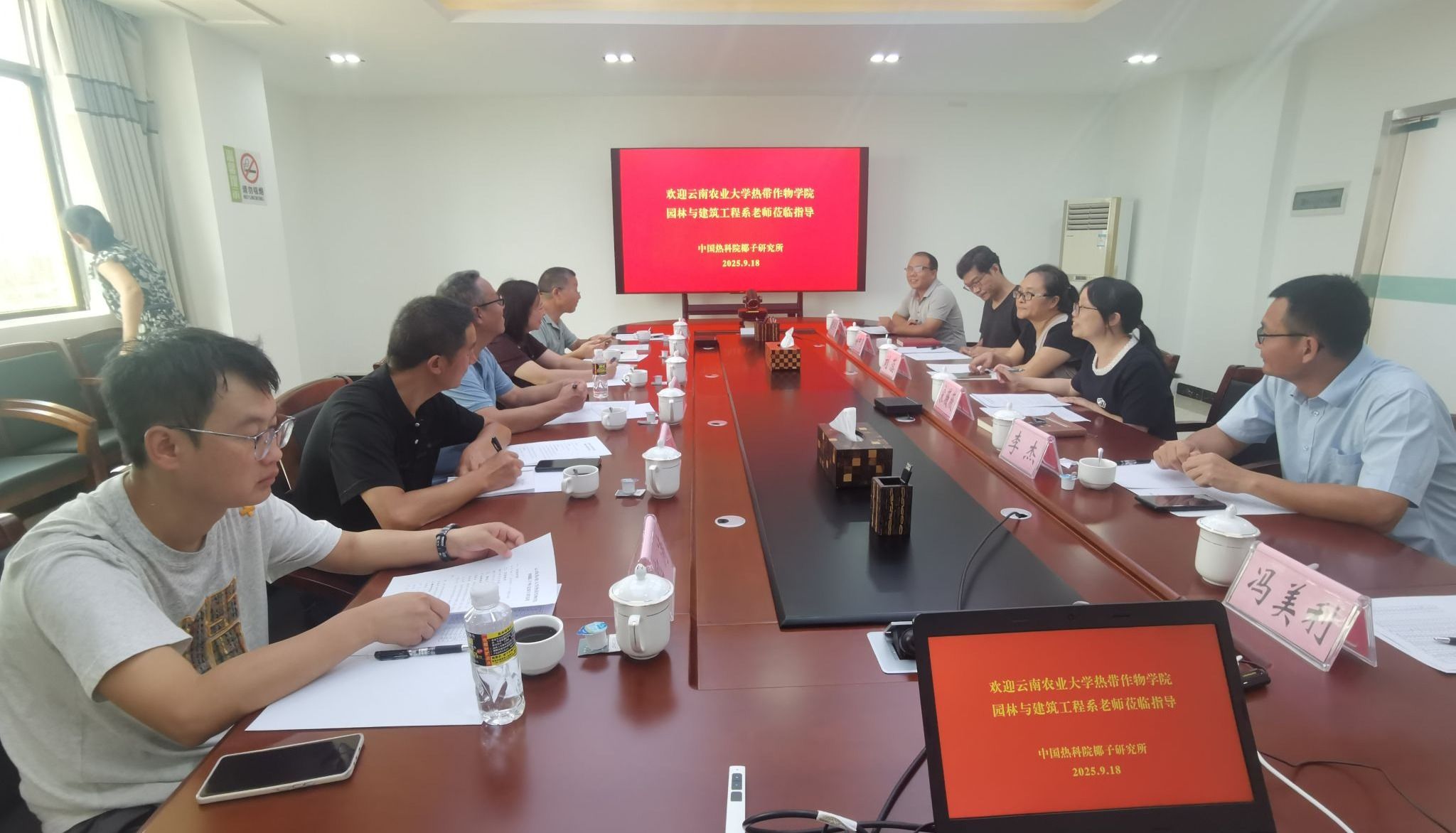 为了进一步促进学生实习和科研合作等项目,强化科教融合与协同育人机制,园林与建筑工程系主任赵维峰一行六人于2025年9月14日至19日前往中国热带农业科学院南亚热带作物研究所、中国热带农业科学院热带生物技术研究所、中国热带农业科学院热带作物品种资源研究所、中国热带农业科学院椰子研究所就学生实习和科研开展进行交流学习。