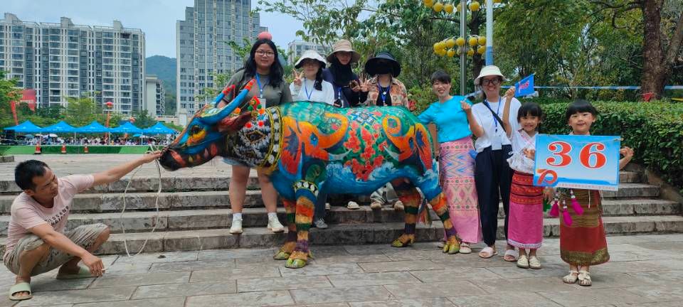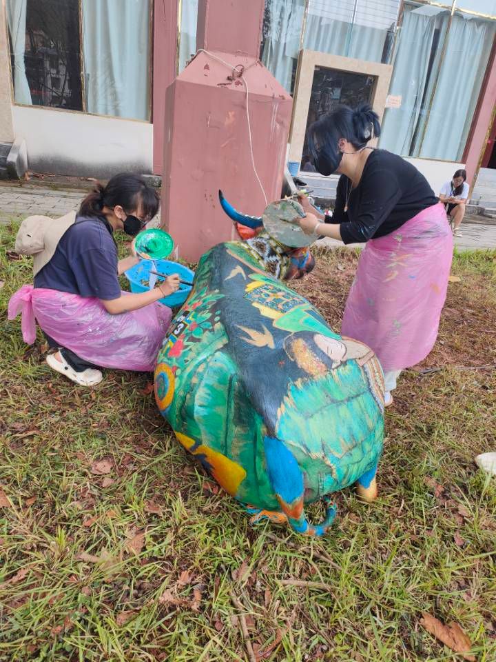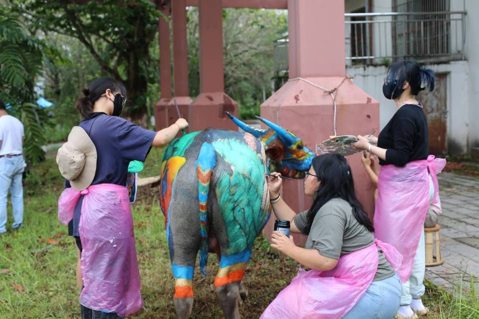 2024年5月18日,江城县第六届牛体彩绘大赛圆满落幕,该大赛是一项独具民族特色的隆重赛事,来自各地的优秀艺术家用画笔在牛体上绘制出艳丽图样,使牛体与艺术呈现完美结合。园林与建筑工程系两名教师和4名同学(风景园林)积极参与了比赛,旨在传承和弘扬传统牛体彩绘艺术,同时鼓励师生发挥创新精神,将现代审美与传统技艺相结合。大赛现场,师生们充分发挥自己的创意和才华,用画笔在牛体上绘制出了色彩斑斓、栩栩如生的图案,最终完成了以《美美与共,铸梦三江》为主题的彩绘作品,展现了师生们的艺术功底,更体现了他们对传统文化与艺术的热爱和尊重。