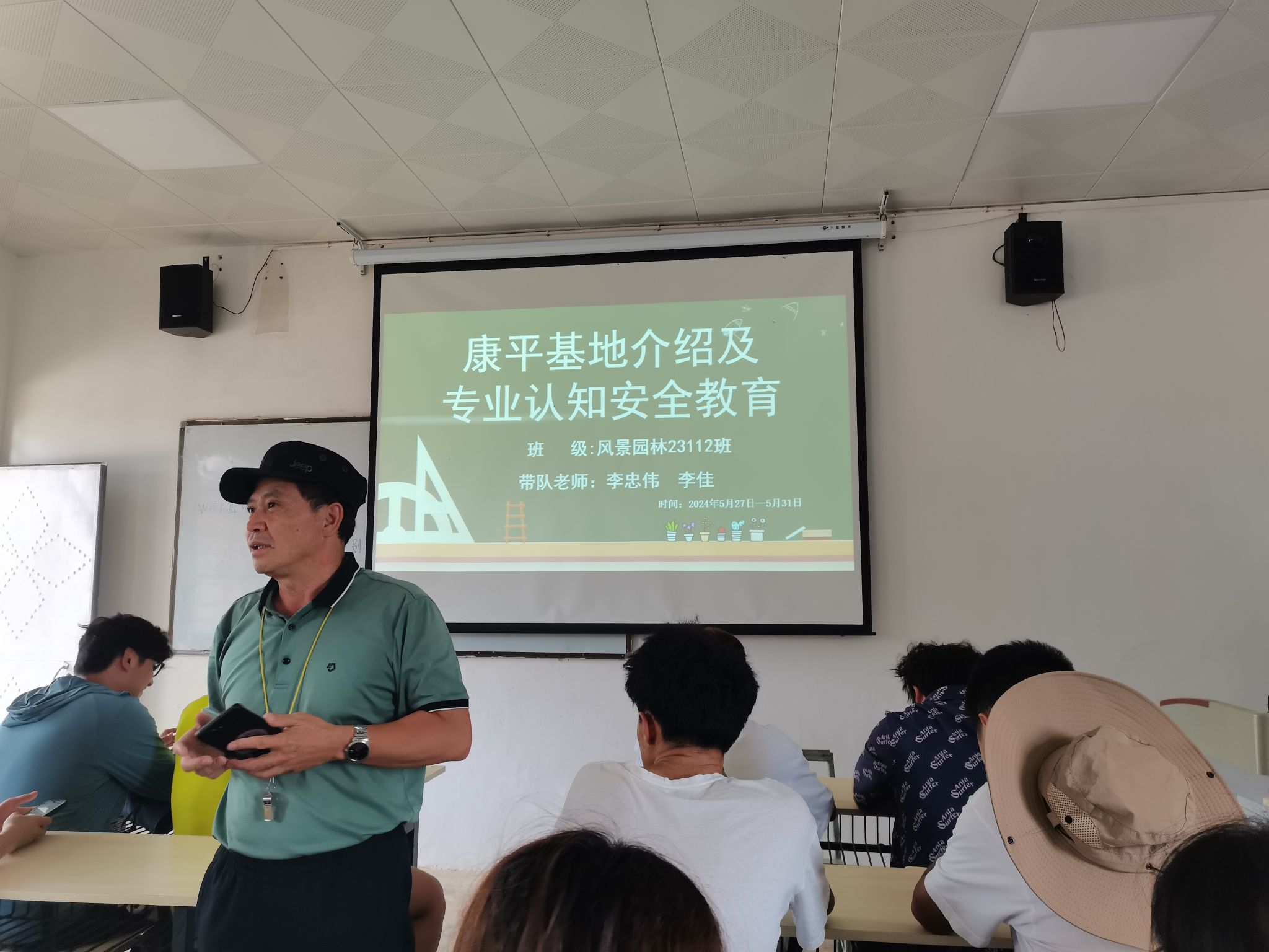到达康平基地,安排好相关工作,指导老师李忠伟及基地负责人周晓龙对同学们进行安全教育工作及基地基本情况介绍。