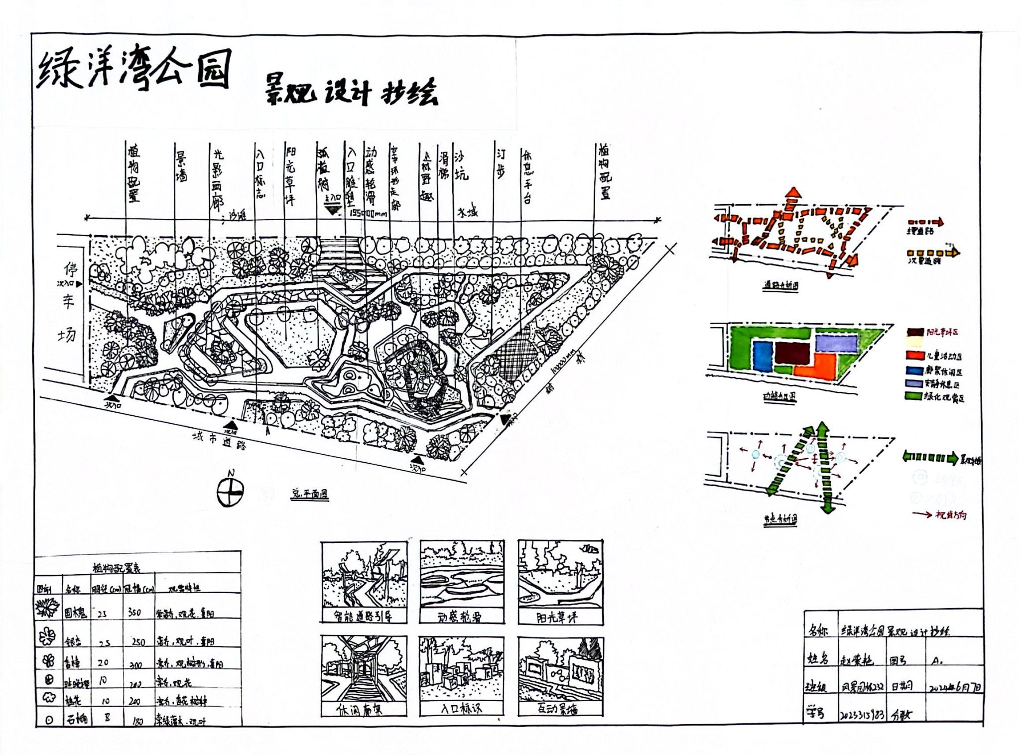 课程在前期大量临摹和CAD制图的训练基础上,课程结合学院绿地规划建设需要,分别围绕学院校园绿化,分小小组在学校校园中如学院足球场看台后的绿地、学院篮球场旁绿地等进行勘测,设计。