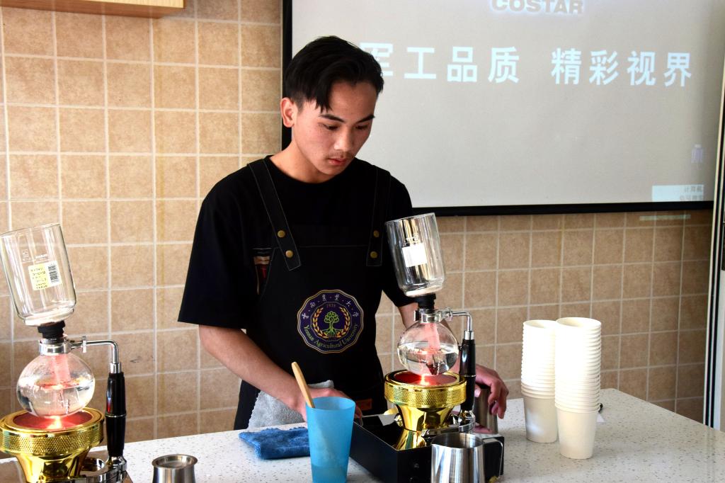 酒店管理与数字化运营专业学生在咖啡体验室进行咖啡调配训练