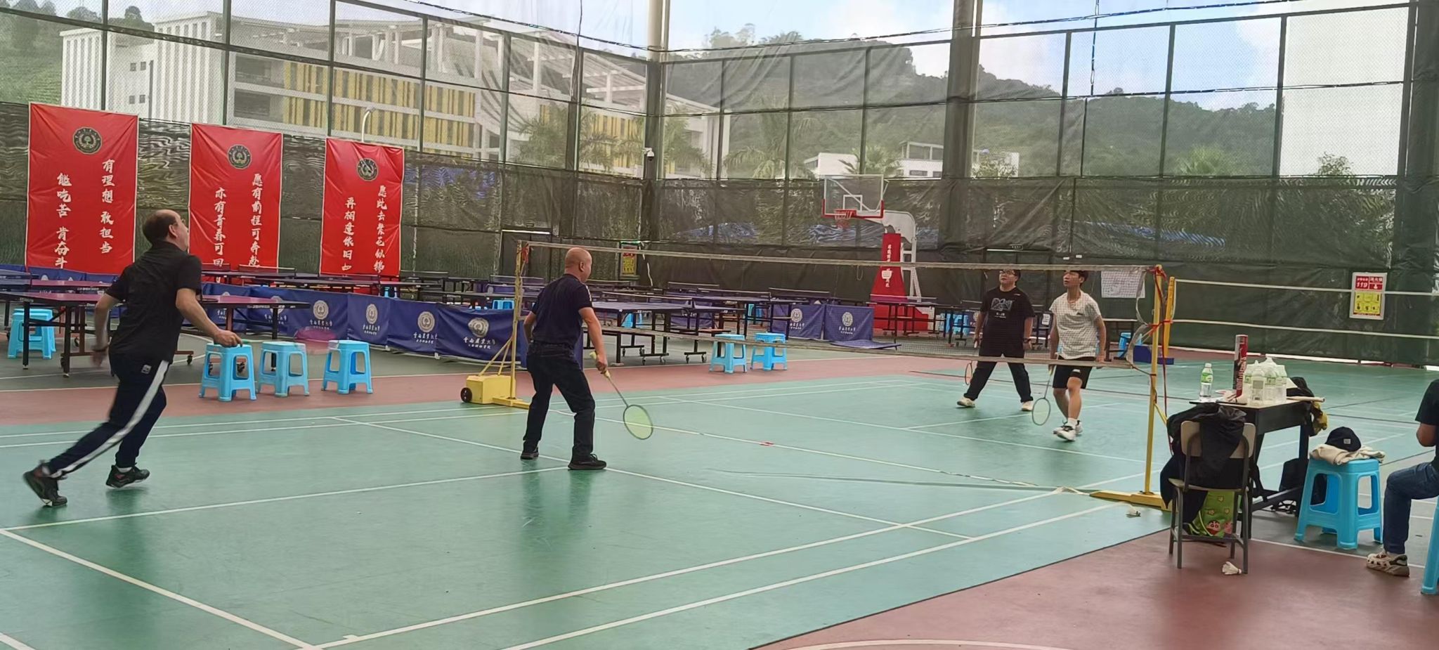 在比赛中,裁判员秉公执法,严厉认真,运动员顾全大局,识大体,服从裁判,积极拼搏,场下拉拉队员呐喊助威。教职工良好的精神风貌和全面的优秀素质,保障了比赛的公平性、连续性和观赏性,使比赛绚丽多彩。